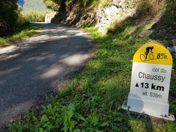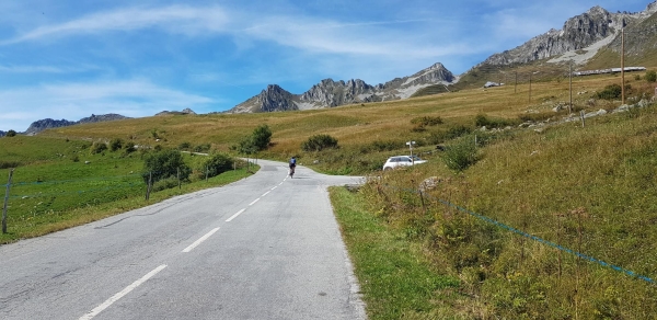 A Montvernier on continue vers le Col du Chaussy, c'est beau et très agréable avec peu de circulation. On arrive au col après 13 kms de montée depuis la vallée, on se fait une petite crêpe et un café pour reprendre des forces car on décidé d'enquiller le Col de la Madeleine !