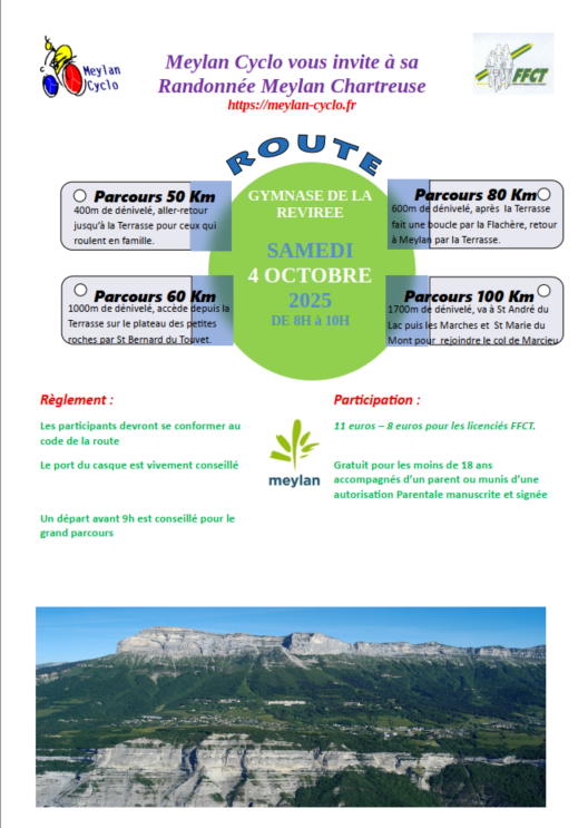 Merci de relayer l'annonce de notre rallye Chartreuse 2025 qui se déroulera le samedi 4 octobre 2025 prochain.