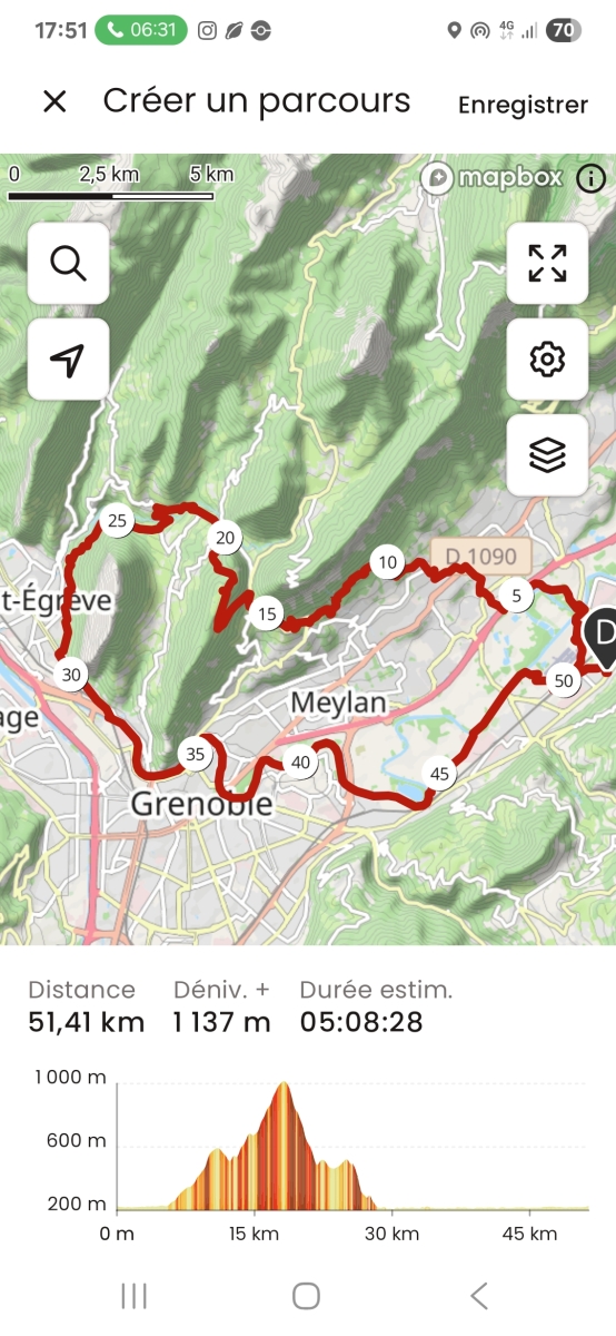 Le single nous amène rapidement à St Egreve puis st Martin le Vinoux. Nous enchaînons vers Grenoble par la piste cyclable du bord de l'Isère et rentrons au Versoud par un petit single amusant sous la piste cyclable qui va au campus.